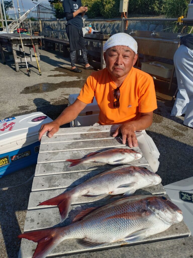 今日も場所を移動しながら確ポイントで型を見る事が出来ました〜!今日は水面バラシや大型バラシ等もあり残念なシーンもありました……。トップは胴の間の方で3枚!3.9kgの他に2.5kgも!又、2枚の方も3名!残念ながらお一人様だけ真鯛の顔を見る事が出来ませんでした…。(TдT)またリベンジして下さいm(_ _)m他にはイナダ、黒鯛、大鯵が交じりました!