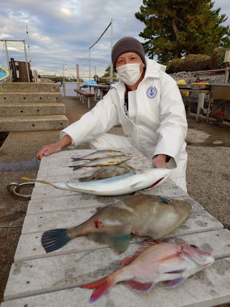 真鯛は2kgを頭に、イサキ、イナダ、カワハギ、ウマヅラ、平ソーダ、メジナと今日は魚種多彩に釣れました〜(^^)