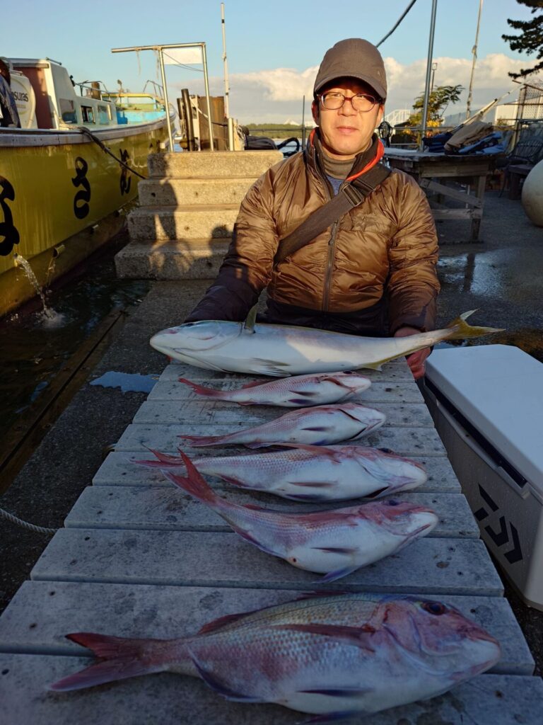 時化後の今日は少し水温も下がり良い雰囲気に!場所場所で型が見れてトップは胴の間で5枚!2枚2名!他にワラサ、イナダ、黒鯛、ハナダイ、ウマヅラ、カワハギ、平ソーダと魚種多彩に釣れました〜(^^)