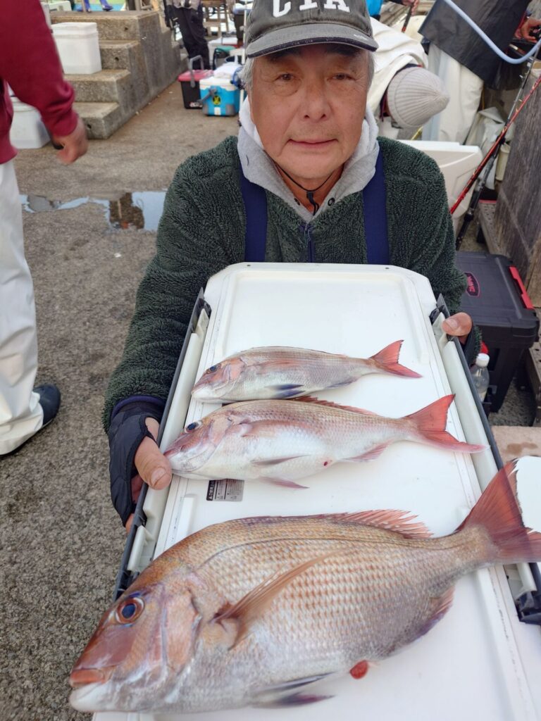 今年最後の出船でした!中々水温が安定せず難しい釣り納めとなりましたがトップ3枚でした!また、本日真鯛釣り初めてのご家族様で御来店下さりましたお母様が最後の最後で真鯛ゲット成功しました(^^)他にイナダ、黒鯛等が交じりました!そして今年1年第三あさなぎ丸にご乗船して頂いた皆様!ありがとう御座いました。来年も相変わらず宜しくお願いしますm(_ _)m皆様良いお年をお迎え下さい!