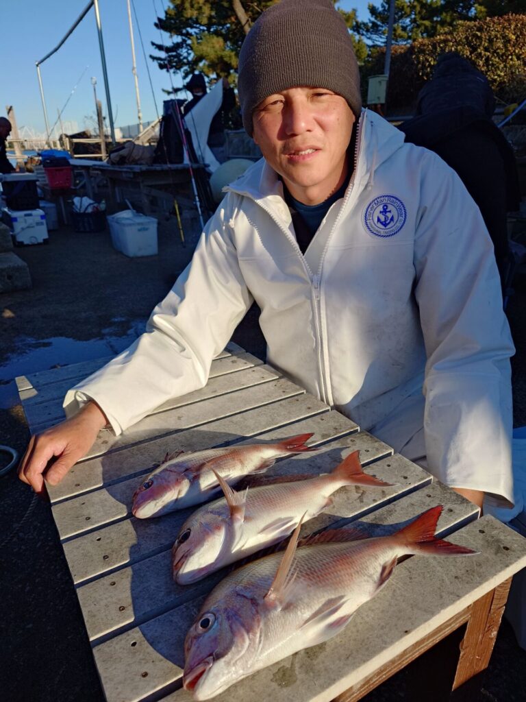 時化後の今日は水色澄み、水温上昇等で朝から苦戦!>.<エサ取りも多く中々当たりが出ませんでした……。それでも皆さん頑張って頂いた甲斐あってか、後半戦はポツンポツンと当たりが出ました〜!トップは3枚2番手2枚2名!イナダ交じりでした。