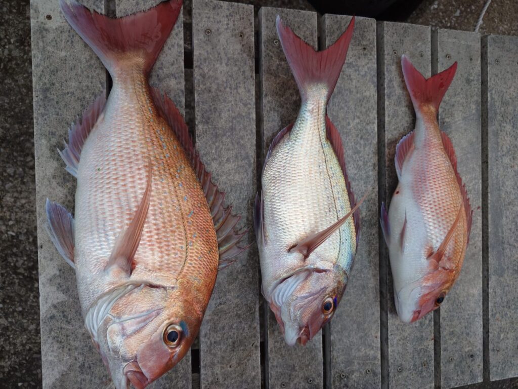 今日は反応良く当たり活発でした~(^^)トップ11枚!2番手8枚!6枚と好釣果となりました。他にイナダが交じりました!
