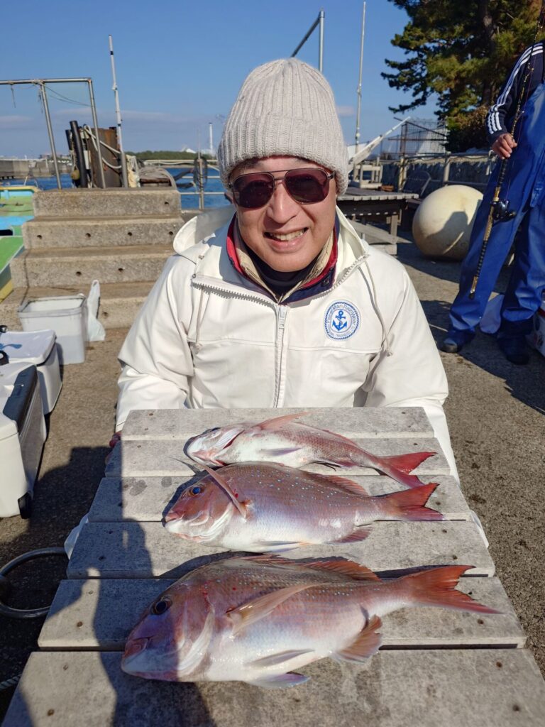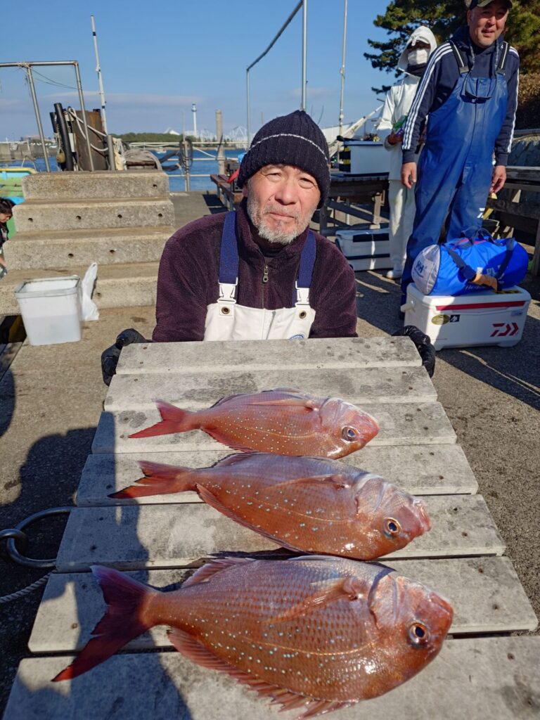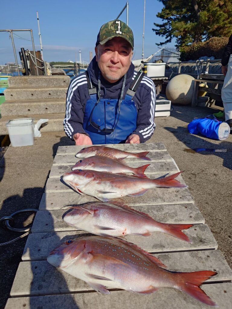 潮変わりから反応良くなり当たり活発になって来ましたトップは5枚!2番手3枚が3名!坊主無く良かったです!バラシもいくつか有りました……。他にイナダ、黒鯛が交じりました。次第に南西風強くなり13時半に早上がりしました!