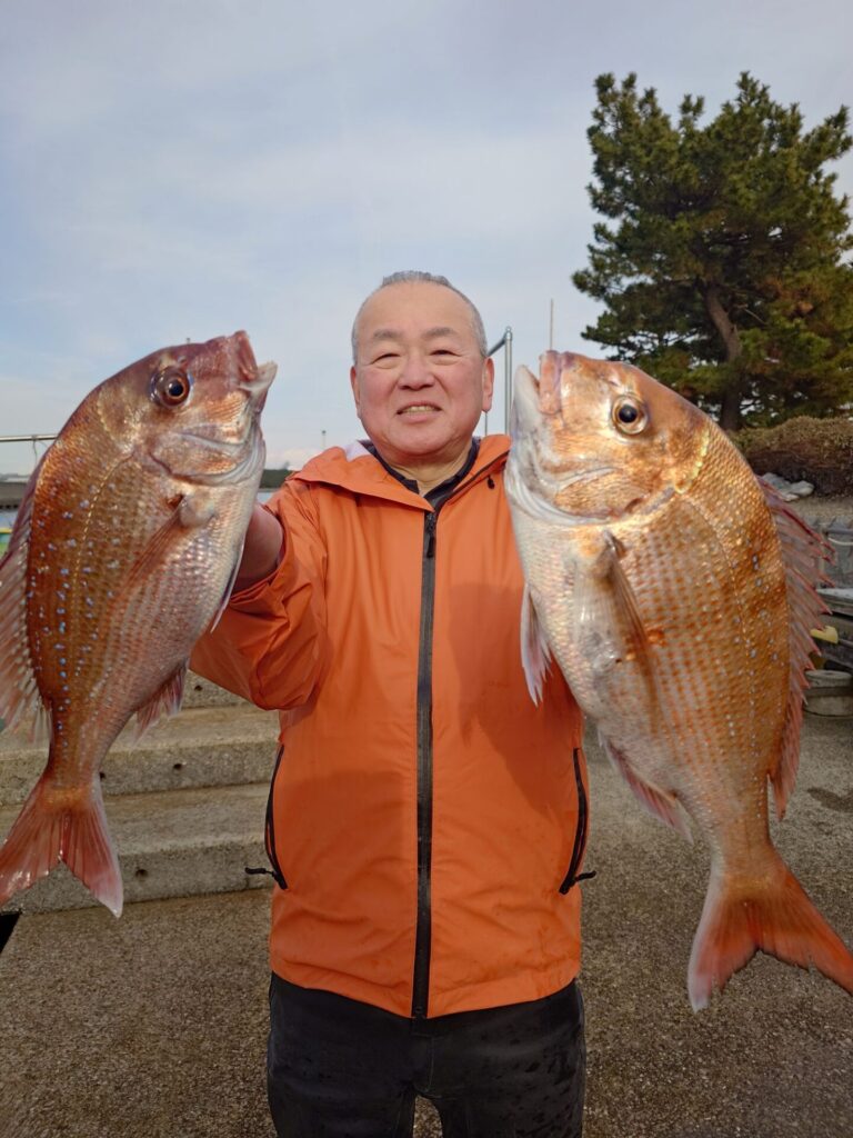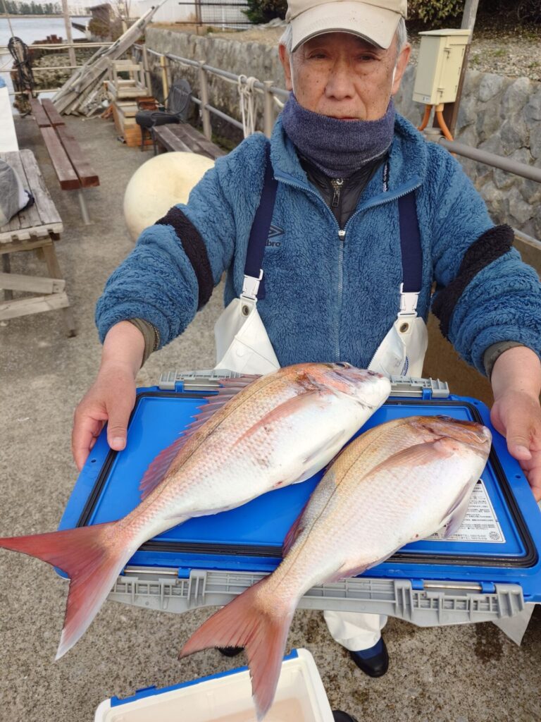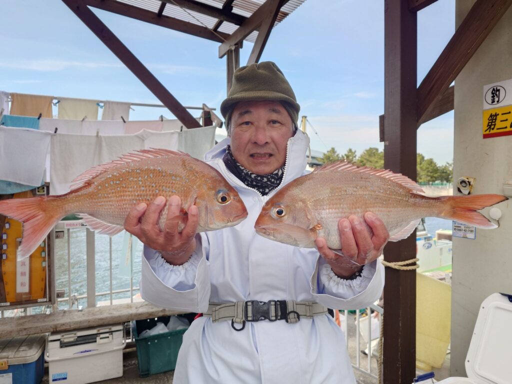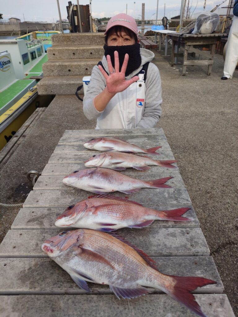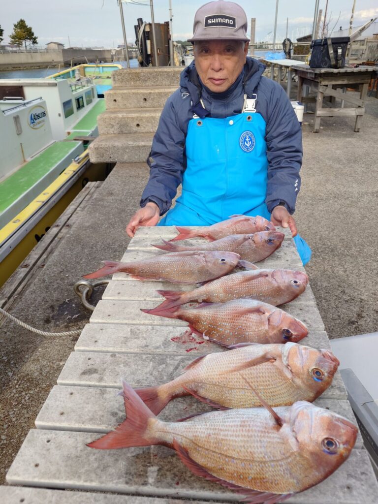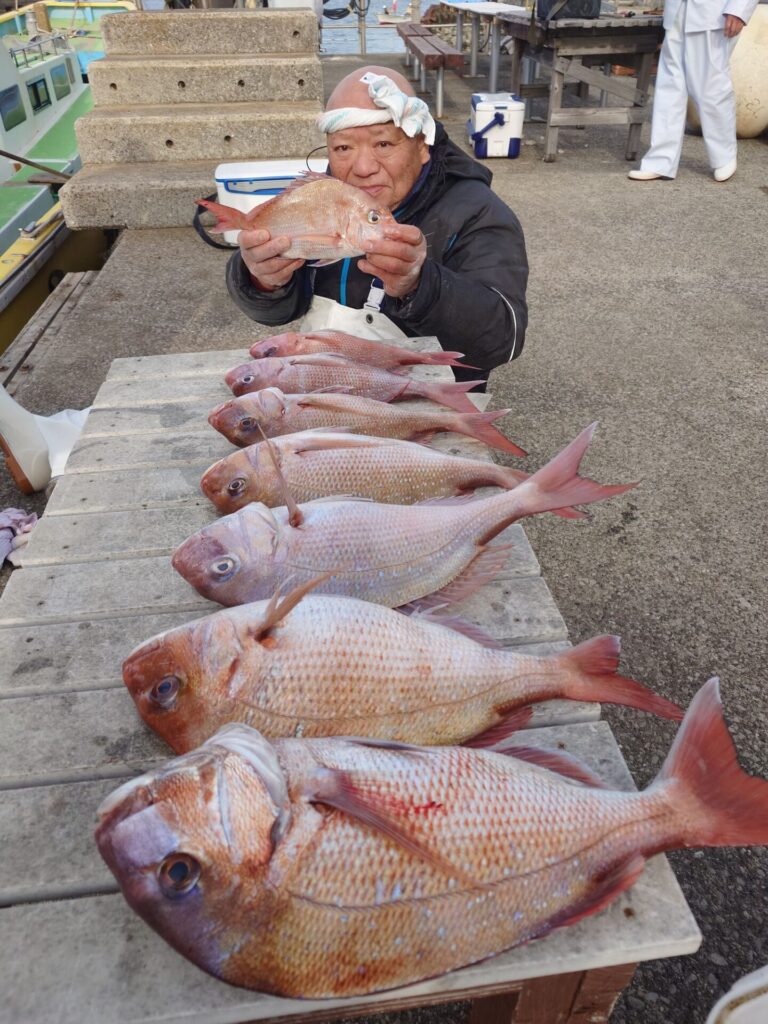 今日は昨日の様な反応が無く厳しいスタートでしたが後半潮がたるんだ時に当たりが出て来始め連チャンする方々がいました(^^)バラシ、ハリス切れ等もありました。良型交じりでトップ8枚!2番手7枚枚!残念ながらお一人様だけ顔を見る事が出来ませんでした……。