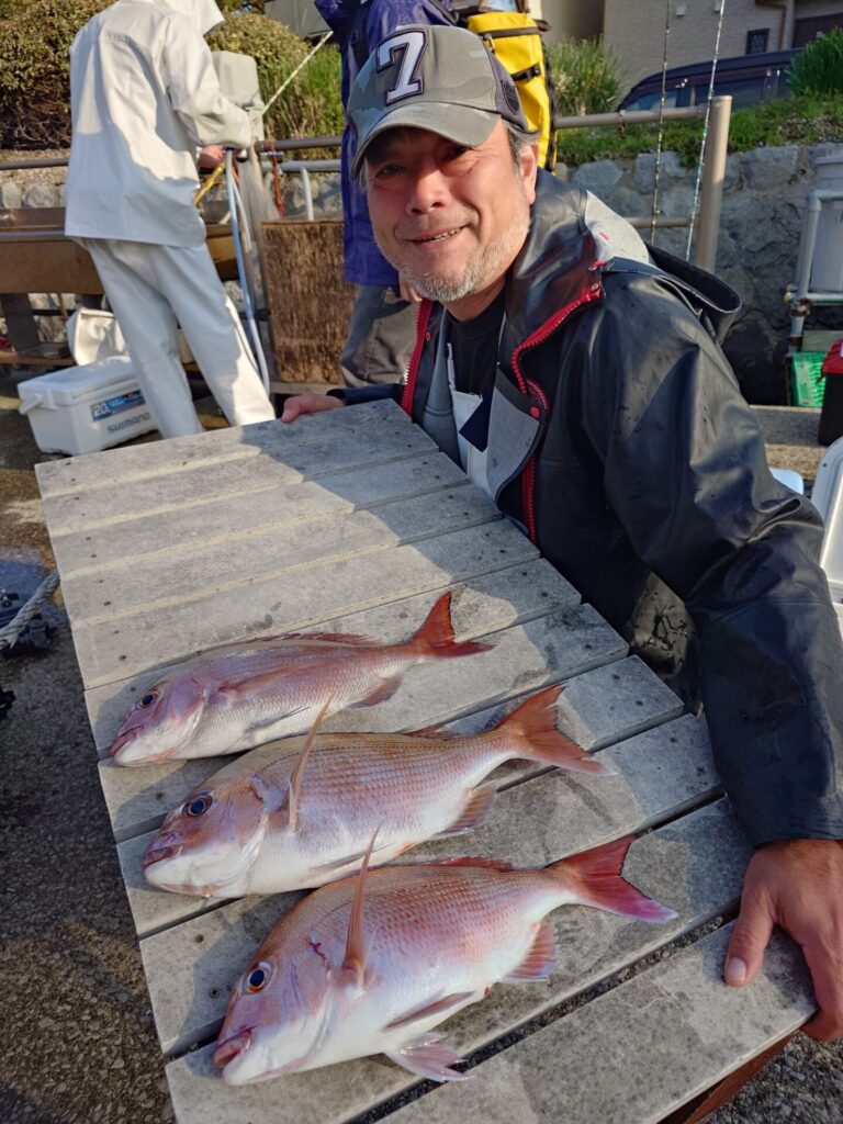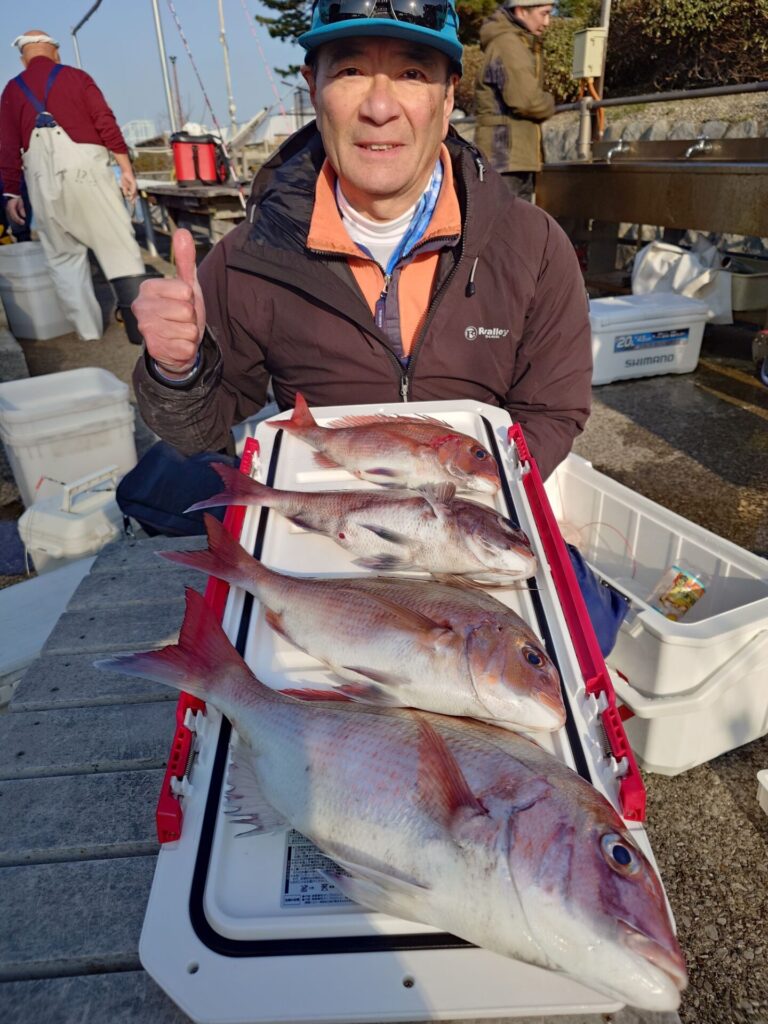 今日は皆さん平均的に当たりが出ました〜(^^)バラシもいくつか有りもったい無い場面も……。トップは4枚!2番手3枚!初挑戦でレンタルの方も2.6kgの良型ゲット出来ました〜!他にイナダ交じり。