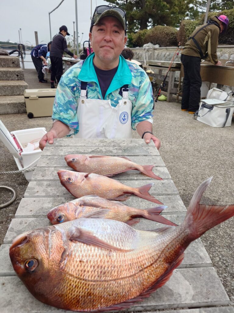 今日も午前中はなかなか当たりが出ない感じでしたが段々と潮がたるんで来ると当たりが出始めて来ました(⁠^⁠^⁠)その後もポツリポツリと当たり、トップ7枚!2番手5枚!4枚2名!3枚の方もだったり良型多く交じり良かったです。他に黒鯛、カイワリ、サバ等が交じりました!