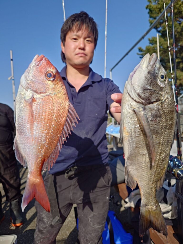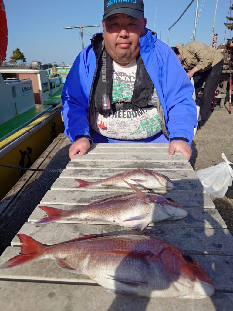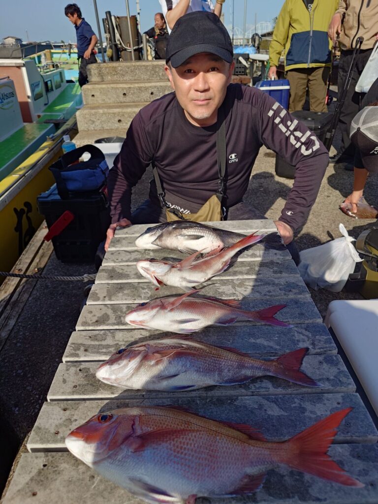 今日はシケ後の出船でしたがポツリポツリと当たりはあり上手くハマった方々は真鯛を複数枚ゲット出来ました〜!難しい日もあれば楽に釣れちゃったりする日も有ります!乗っ込み気配の真鯛!是非チャレンジしてみて下さい(^^)トップは胴の間の方で4枚!2番手3枚!鯵、鯖、黒鯛交じりでした~!