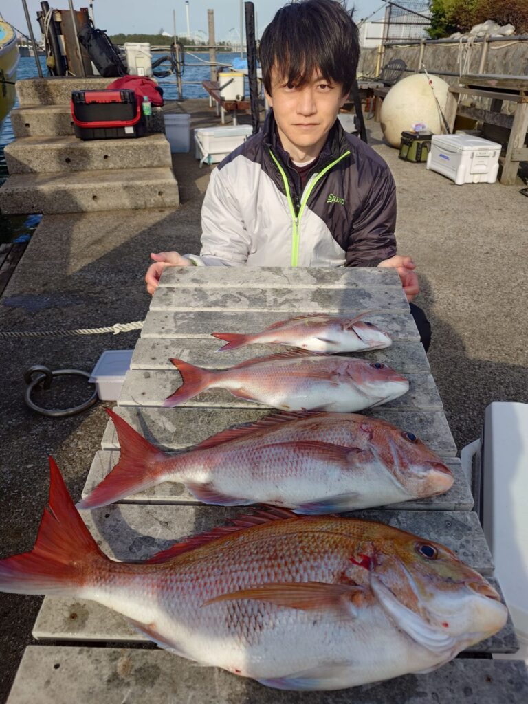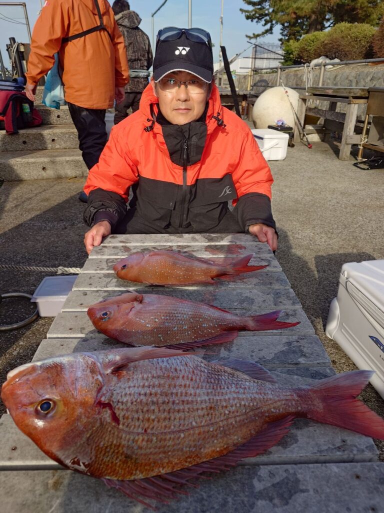 今日は午前中潮が速く苦戦しましたが淀みから潮変わりにかけて後半戦当たり良かったです(^^)3kg、2.6kg、2.4kg等良型も上がり好調でした!トップ5枚!2番手4枚!3枚!他複数枚の方々も!大型真鯛の気配も出てきていよいよ春本番かも知れませんね〜!皆様のご来店お待ちしておりますm(_ _)m