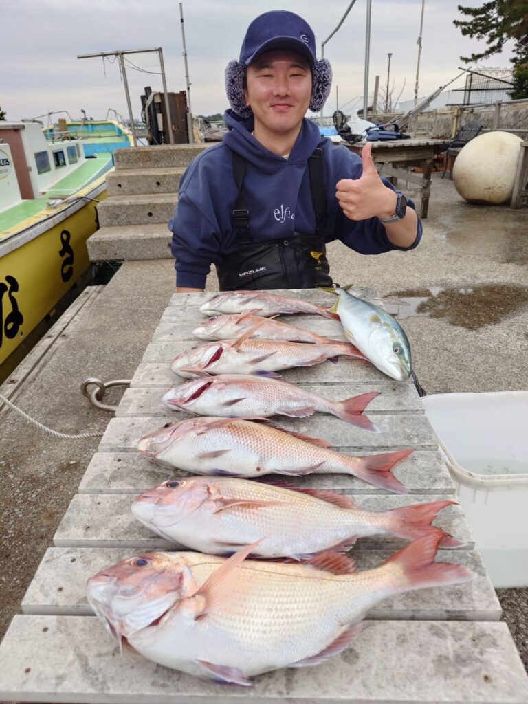 今日は数少ないチャンスタイムを上手く攻略出来た方々真鯛ゲット出来ました!日によりムラはありますが、スイッチ入るとダブル、トリプルヒットなんて事も結構あります!トップ5枚!2番手3枚!イナダ、黒鯛交じり。段々と暖かい日が多くなって来ました(^^)皆様のご来店心よりお待ちしておりますm(_ _)m