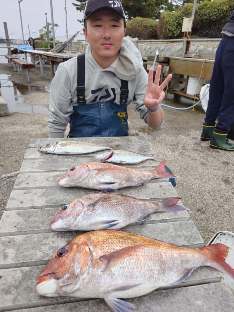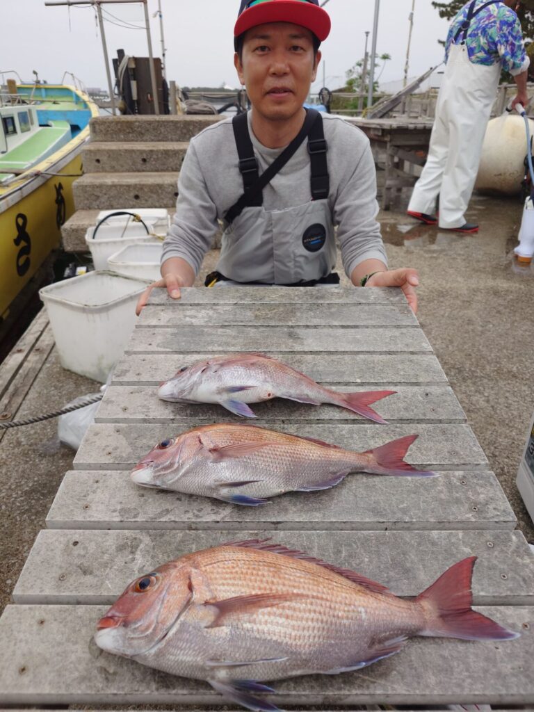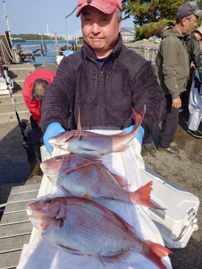 今日はシケ後の出船でしたがポツリポツリと当たりはあり上手くハマった方々は真鯛を複数枚ゲット出来ました〜!難しい日もあれば楽に釣れちゃったりする日も有ります!乗っ込み気配の真鯛!是非チャレンジしてみて下さい(^^)トップは胴の間の方で4枚!2番手3枚!鯵、鯖、黒鯛交じりでした~!