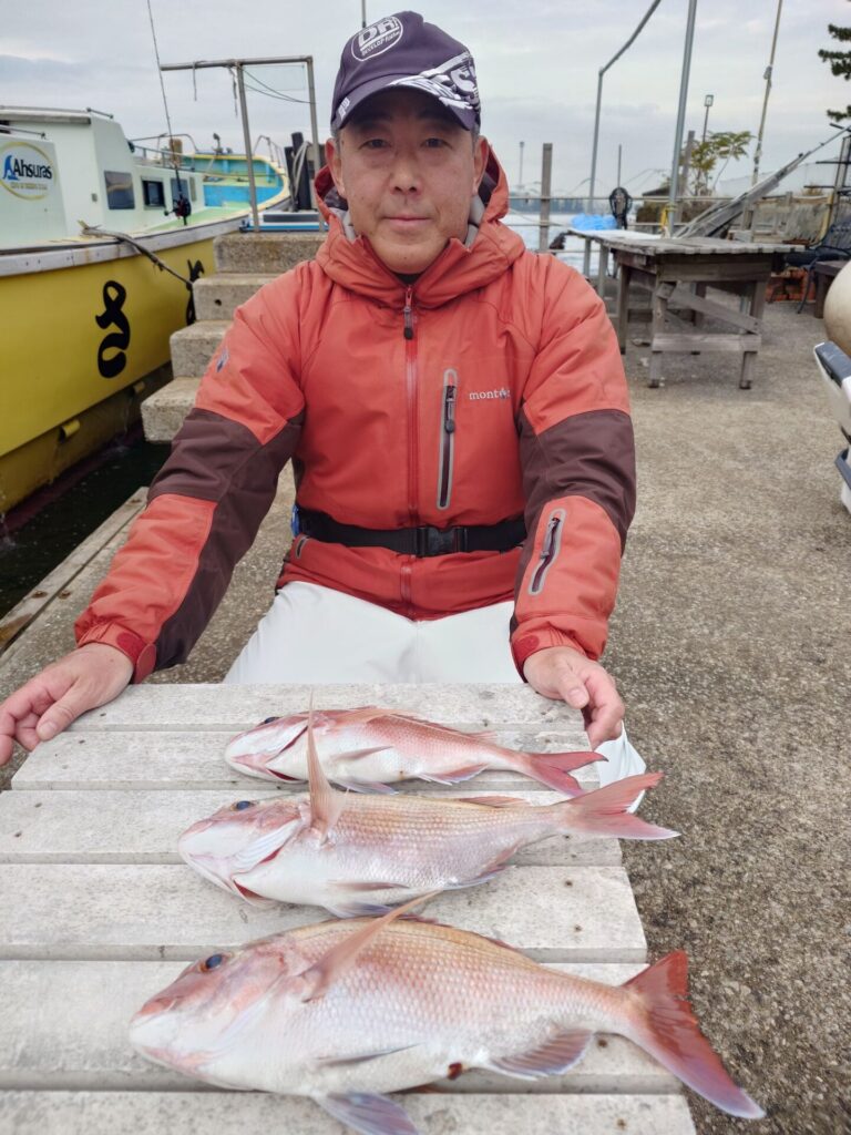 今日はまたまた水温上昇(+_+)一体何処まで上がるのやら…。今日も場所を転々と移動しながら拾い釣り!上手く食わせた方々真鯛ゲット出来ました!トップは2kgを含め3枚!残念ながらお一人様だけ顔を見ることが出来ませんでした……。ごめんなさいm(_ _;)m早めのリベンジお待ちしております。 他にウマヅラ、平ソーダが交じりました!