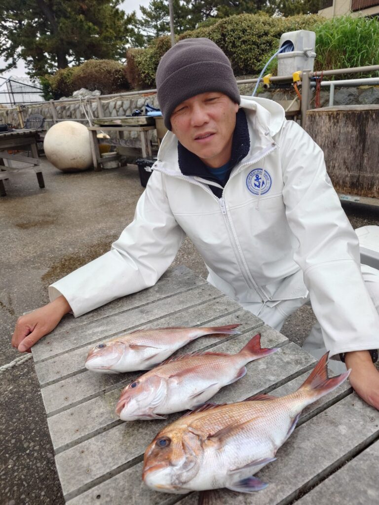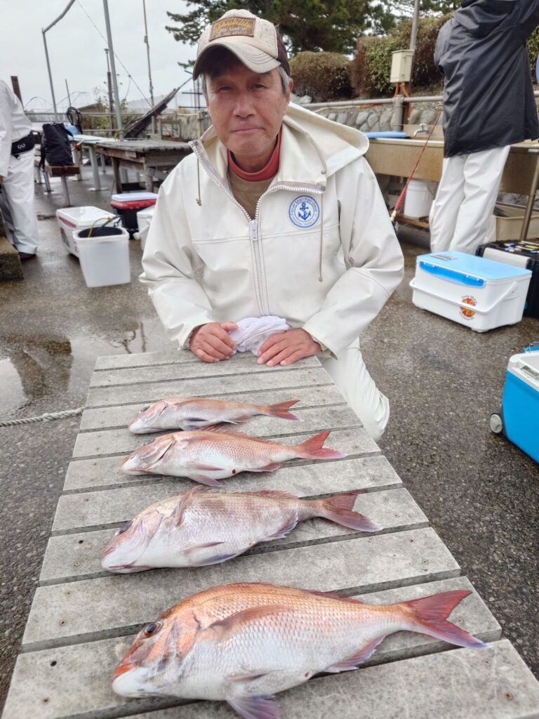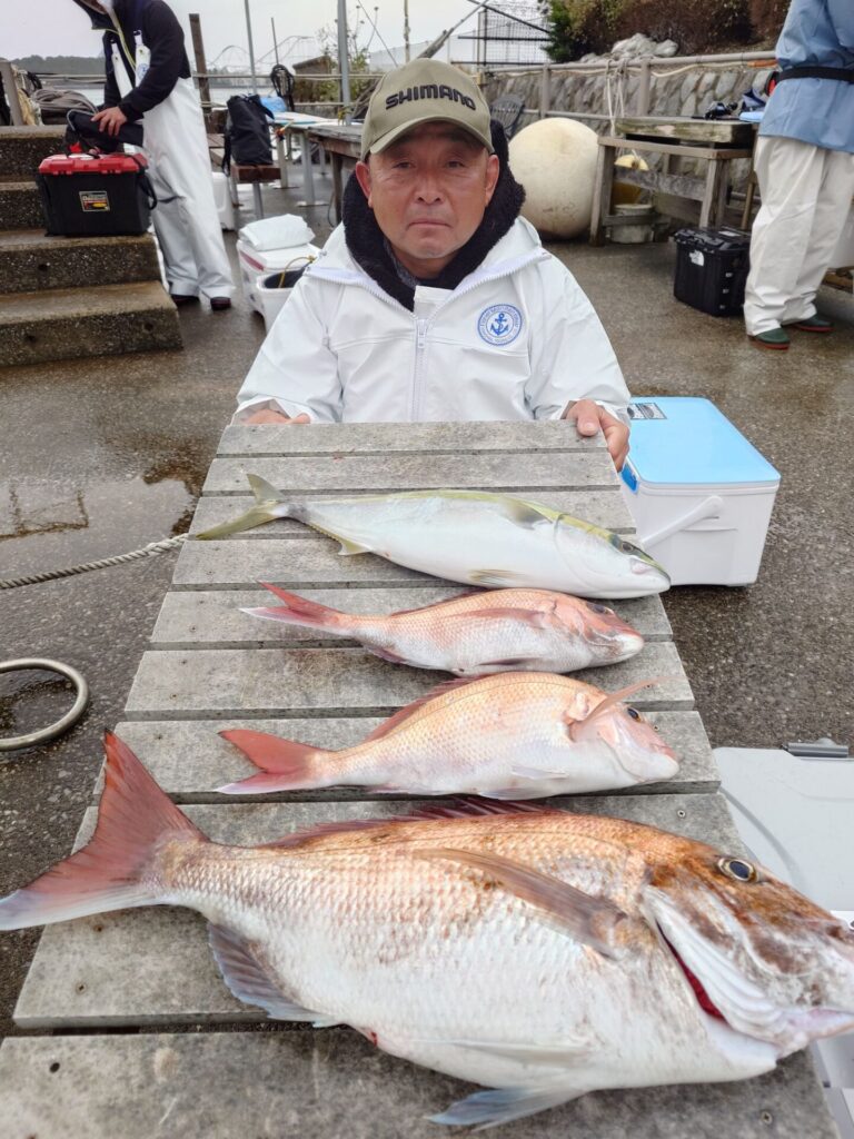 今日は朝から反応よく平均的にポツポツと当たりがありました!3kgの良型や2kg超えの良型もいくつか上がり良かったです。バラシなんかもありました!トップの方は3枚2名!2枚も2名!他には黒鯛、サバ等が交じりました!