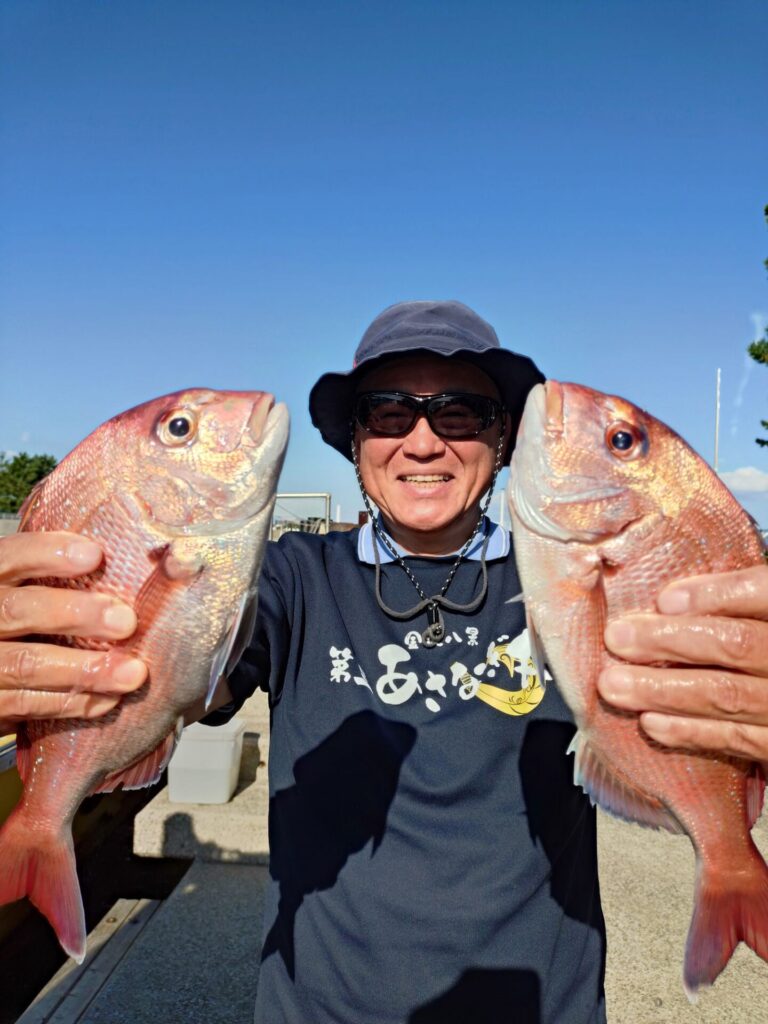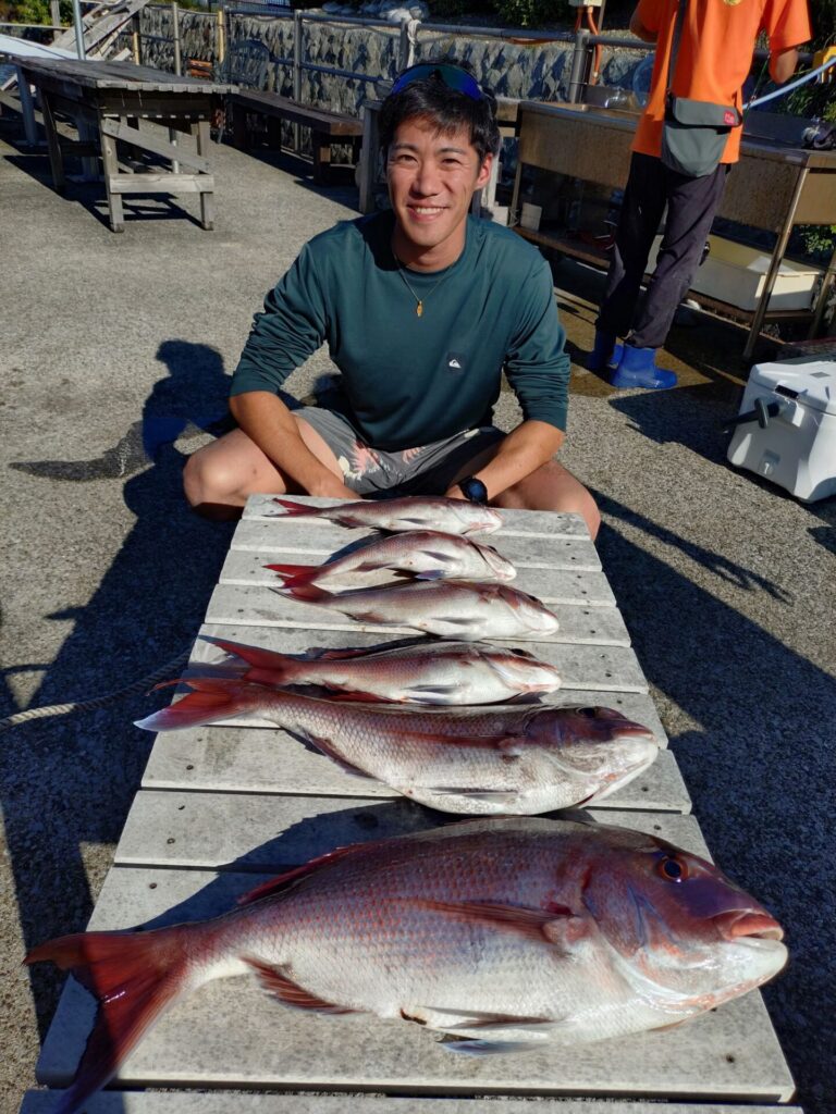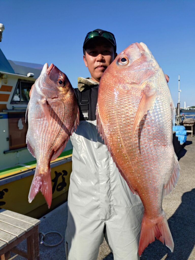 今日も場所を移動しながら確ポイントで型を見る事が出来ました〜!今日は水面バラシや大型バラシ等もあり残念なシーンもありました……。トップは胴の間の方で3枚!3.9kgの他に2.5kgも!又、2枚の方も3名!残念ながらお一人様だけ真鯛の顔を見る事が出来ませんでした…。(TдT)またリベンジして下さいm(_ _)m他にはイナダ、黒鯛、大鯵が交じりました!