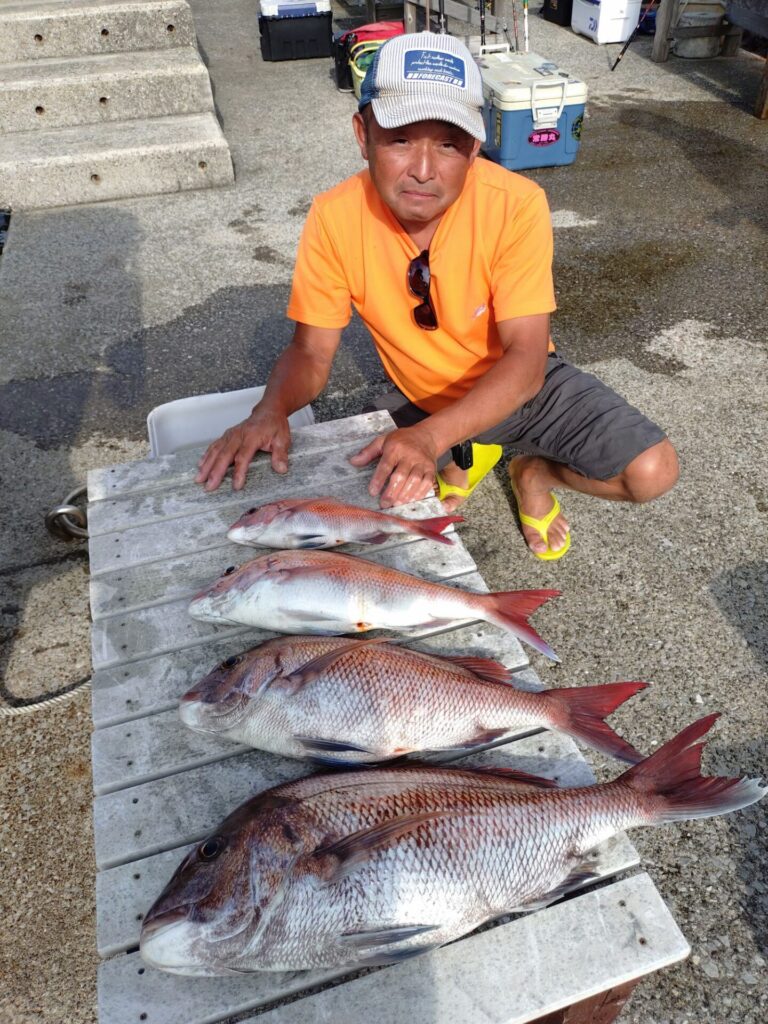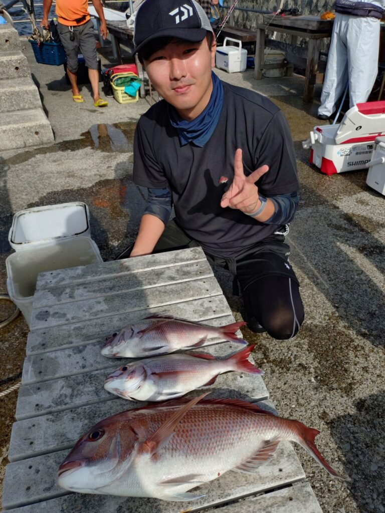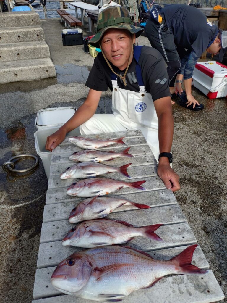 今日は反応あるものの難易度高く苦戦しました…。皆さん鯵やイナダ等でお土産は確保出来ましたが本命の真鯛は皆さんには回らず厳しい1日となってしまいました……。トップ2枚が2名で最大は2.5kgでした。